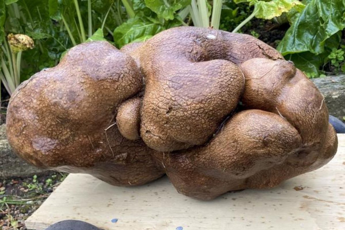 El tattie de gran tamaño, llamado Dug, se encontró en un jardín en Hamilton, Nueva Zelanda, con un peso de 7,9 kg.