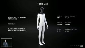 ” Tesla Bot” podrÃa realizar una variedad de trabajos, desde fijar pernos a automóviles con una llave, hasta recoger alimentos en las tiendas.