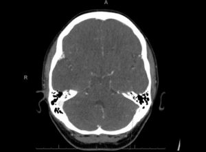 Una paciente por lo demás sana de unos 40 años llegó al departamento de emergencias del Hospital UCHealth de la Universidad de Colorado doce días después de recibir la vacuna Johnson & Johnson con dolor de cabeza, mareos y cambios en la visión.